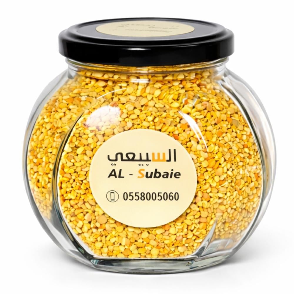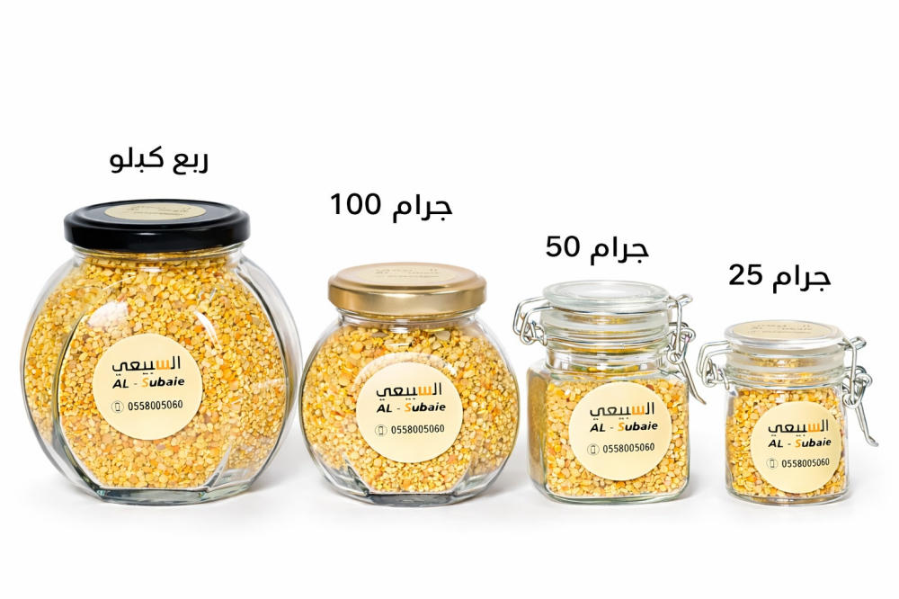 ج: هي بودرة ناعمة موجودة في الأزهار، وهي ما تسمى بلقاح الأزهار، وهذه البودرة تعلق في أماكن مختلفة من جسم النحلة عندما تقترب من هذه الأزهار، وتقوم النحلة بتخزين هذه البودرة في أماكن خاصة في قدميها الخلفيتين، ثمّ تنقلها إلى أماكن خاصّة في الخليّة تسمّى بالمصائد.